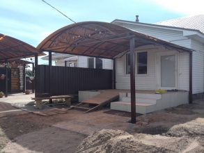 Заказали в начале прошлого года навес. В офисе фирмы выбрали его с понравившимся нам цветом поликарбоната. Замер произвели сами накануне, поэтому в услугах замерщика не было нужды. После оплаты 50 процентов нам назначили дату приезда и монтажа навеса. Сотрудники пояснили, что подобный объём работы занимает три дня, а также сообщили о необходимости оплаты дороги бригады за эти дни. Бригада вовремя прибыла в назначенный день. Работа спорилась, установка прошла довольно быстро, так что хватило двух дней. Уже 8 месяцев проблем с навесом нет, всё красиво и аккуратно. Планируем на этот год опять обратиться к ним, понадобился навес (козырек) над входной дверью. Компания Арсенал Навесов очень понравилась. Хотим пожелать ей процветания.
